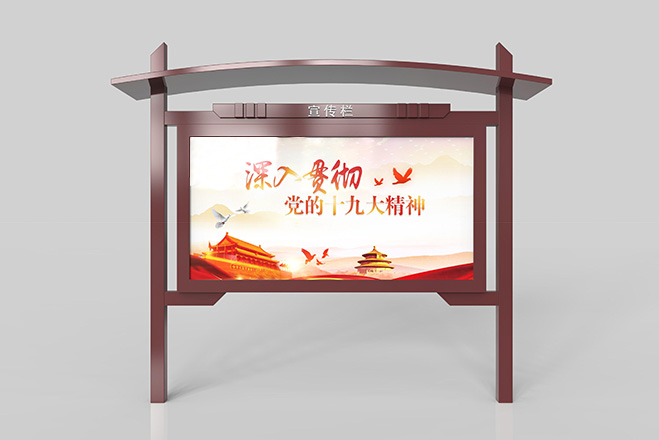 更多宣傳欄是一種VI應(yīng)用,是組織或企業(yè)單位等進行自我宣傳的有效手段,常被應(yīng)用于街道,工廠等公共場所;一般采用不銹鋼為框架,鋼化玻璃或者耐力板為面板,鋁合金為頂棚,面板可以打開更換宣傳畫面。現(xiàn)如今,宣傳欄廣泛應(yīng)用于學(xué)校、小區(qū)、會議館、展廳等各個場地。